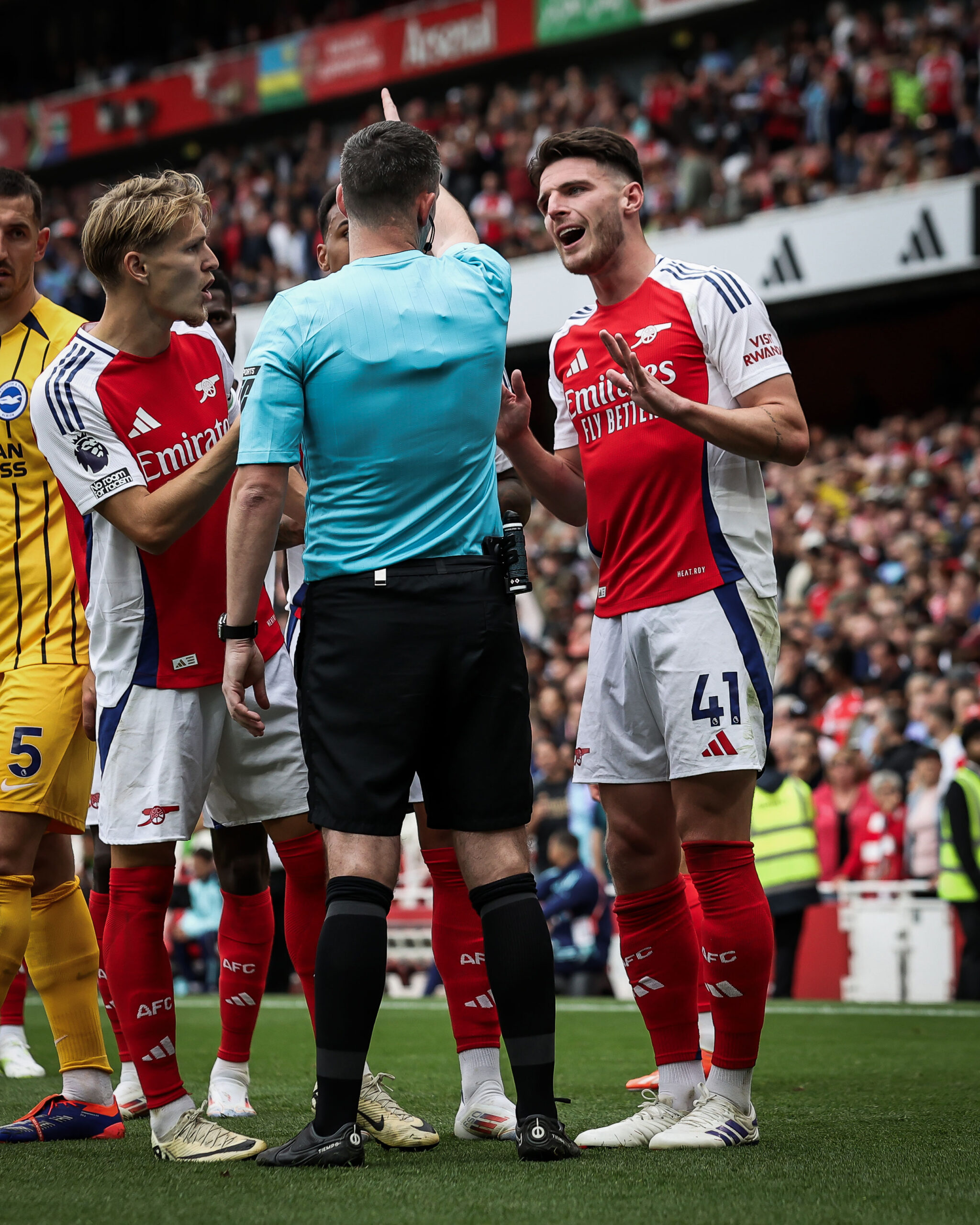 Arsenal’s hopes of maintaining their perfect start to the season were dashed as they were held to a 1-1 draw by a resilient Brighton side at the Emirates Stadium. The match, which initially seemed to be going Arsenal’s way, took a dramatic turn in the second half when Declan Rice was sent off, tilting the balance in favour of the Seagulls.